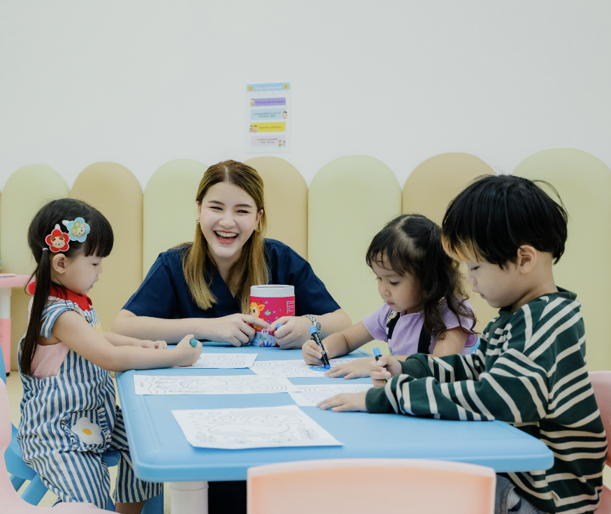 เรามีทีมนักวิชาชีพผู้เชี่ยวชาญด้านพัฒนาการเด็กในการให้คำปรึกษา ฝึกบำบัด กระตุ้นและส่งเสริมพัฒนาการเด็ก ทั้งรูปแบบ คอร์สภาษาไทย และภาษาอังกฤษ สำหรับน้องๆ ที่ศึกษาในโรงเรียนนานาชาติ มีความสามารถและมีประสบการณ์เฉพาะด้านโดยตรง ได้รับใบอนุญาตเฉพาะด้านโดยคณะกรรมการวิชาชีพ และมีใบประกอบโรคศิลปะถูกต้องตามกฎหมายในการให้บริการแก่ผู้ปกครอง